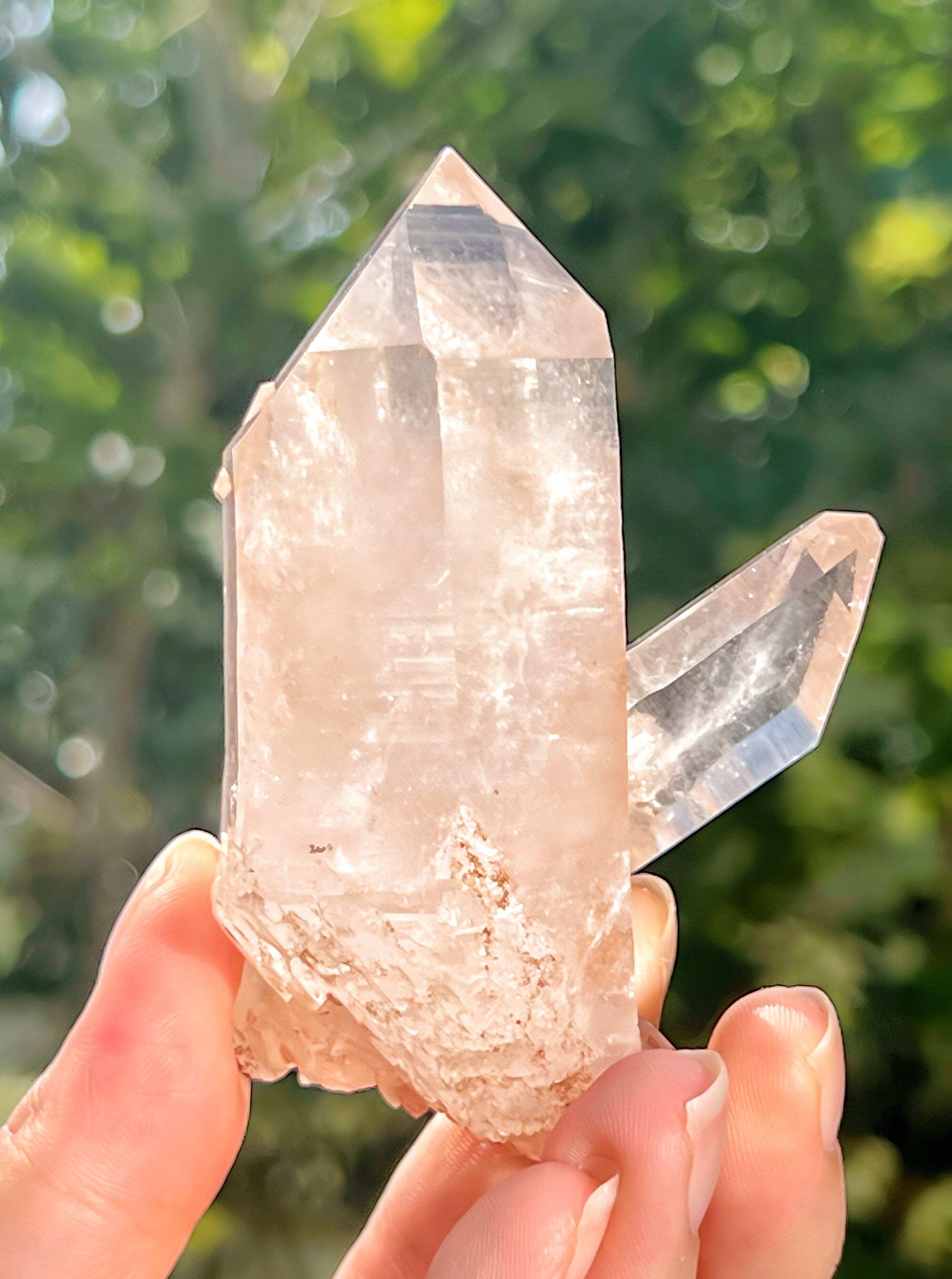 底部にはセルフヒールド(一度折れたり欠けたりした水晶が、自然の中で自分で再び結晶をつくって“癒された”状態)も見られるため、