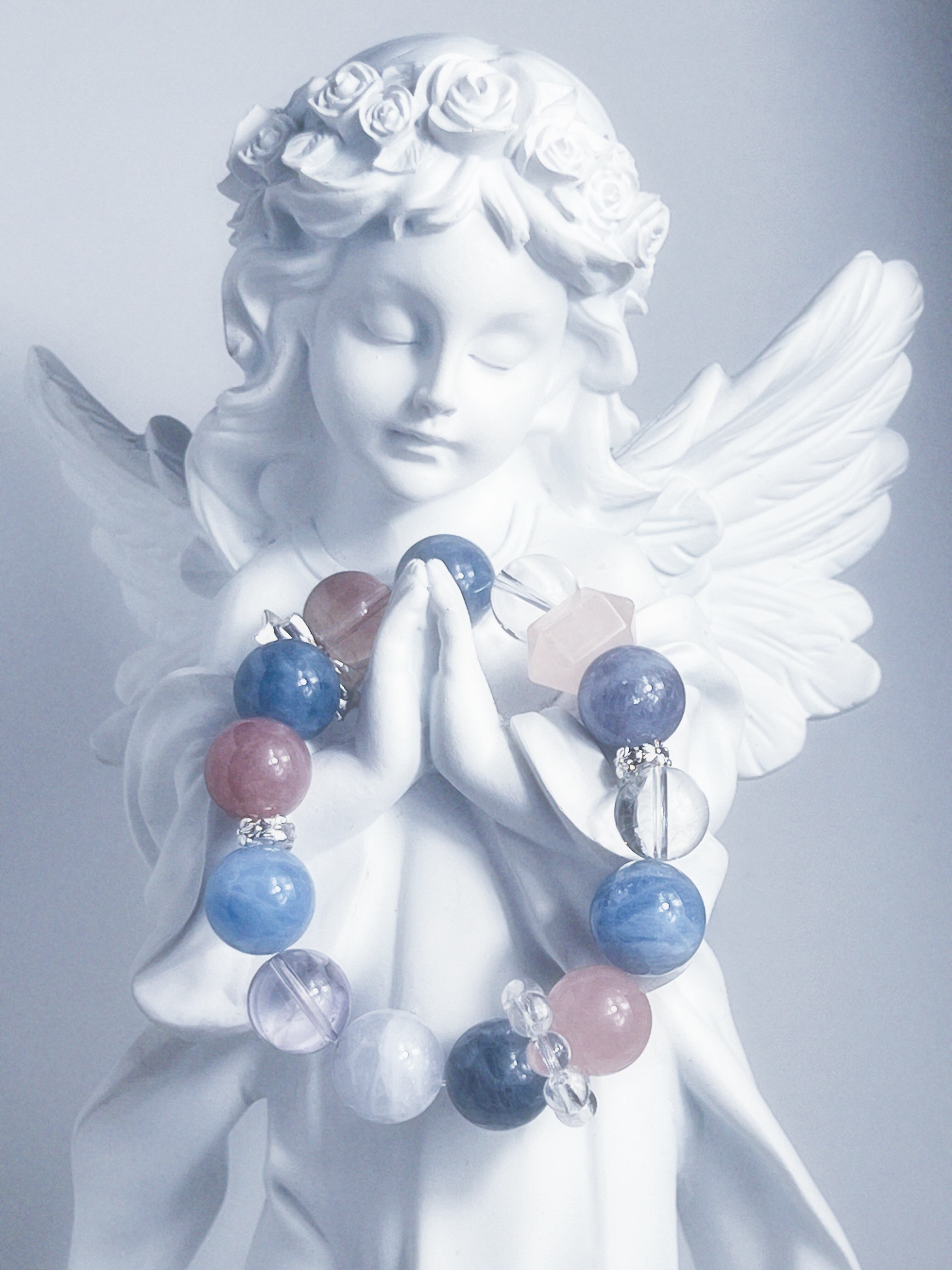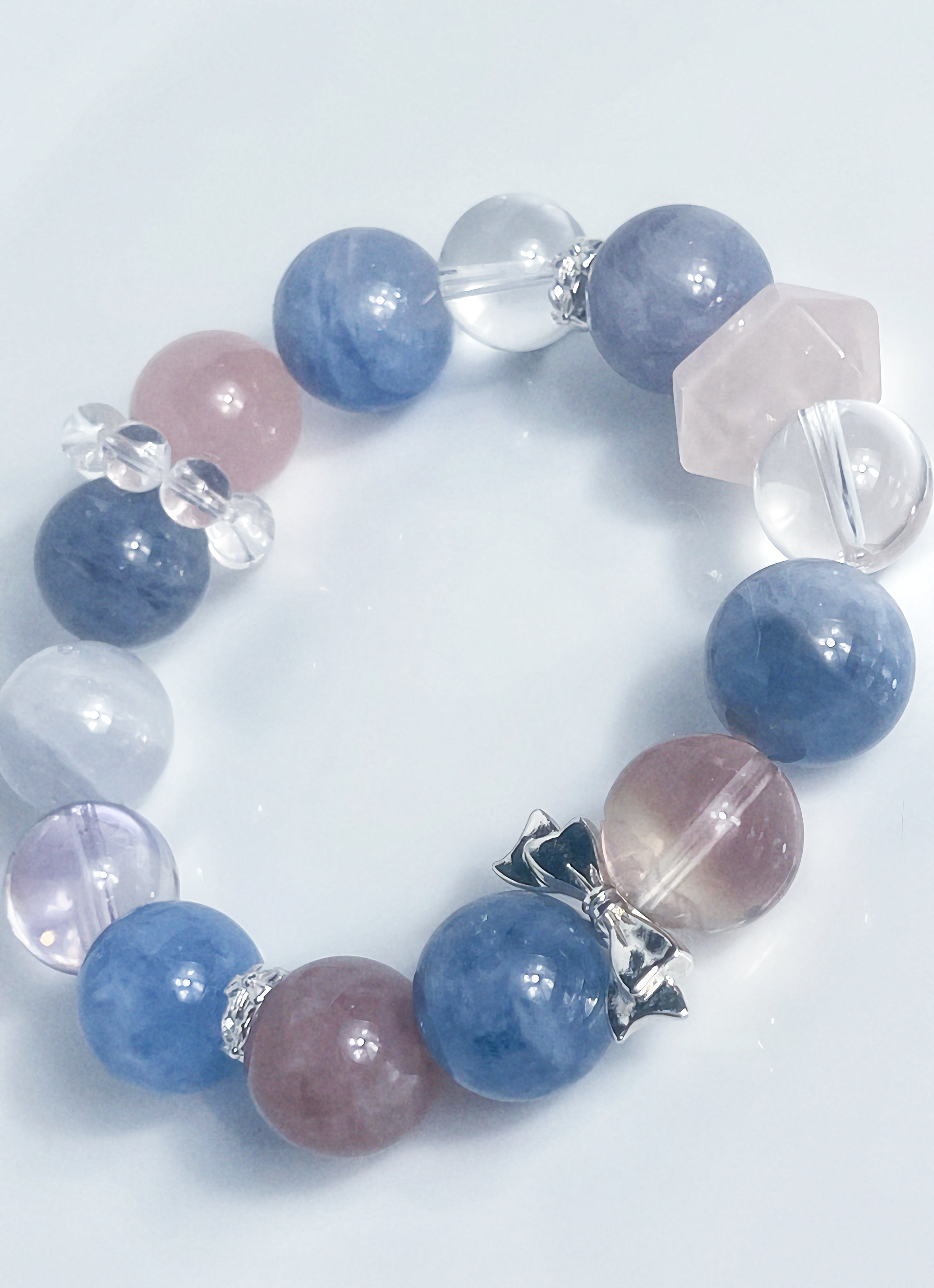 全体の空気をつくるのは、約14mmのブルーローズクォーツ。