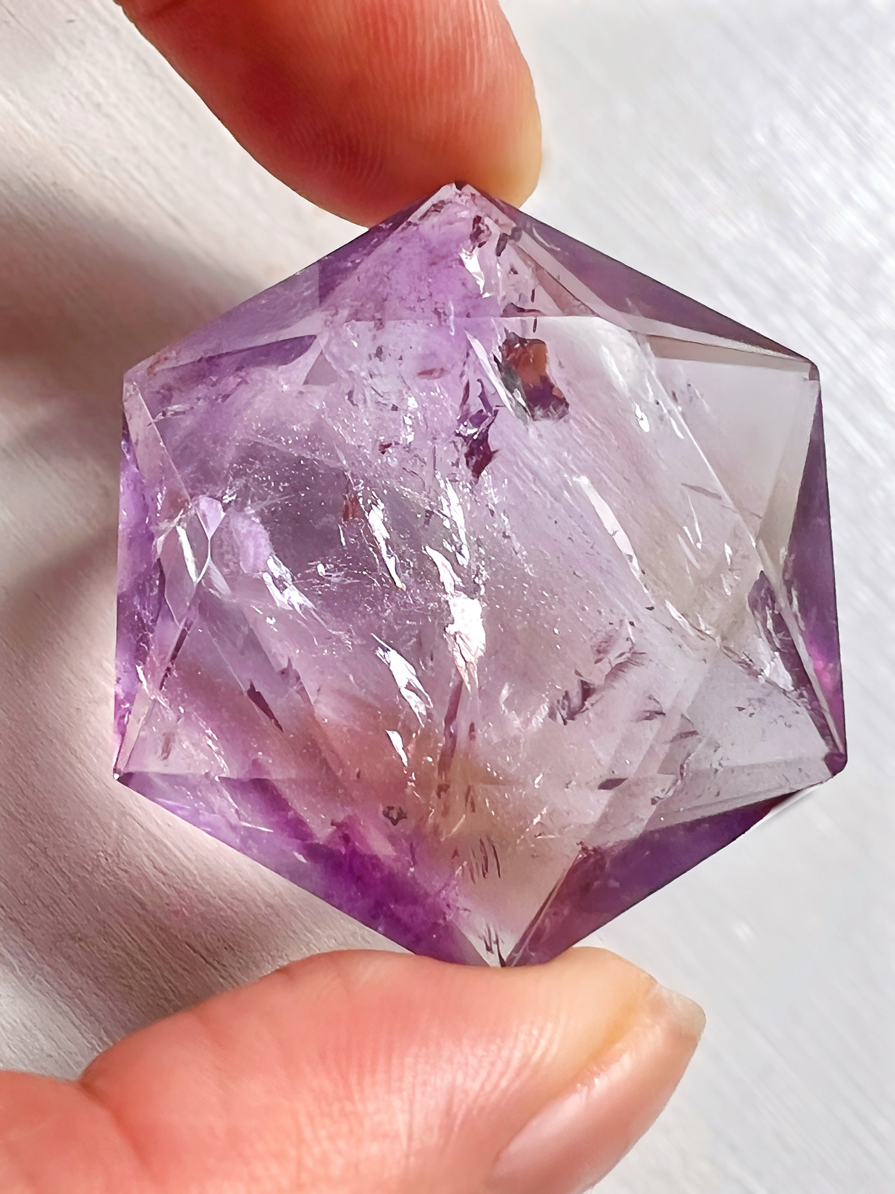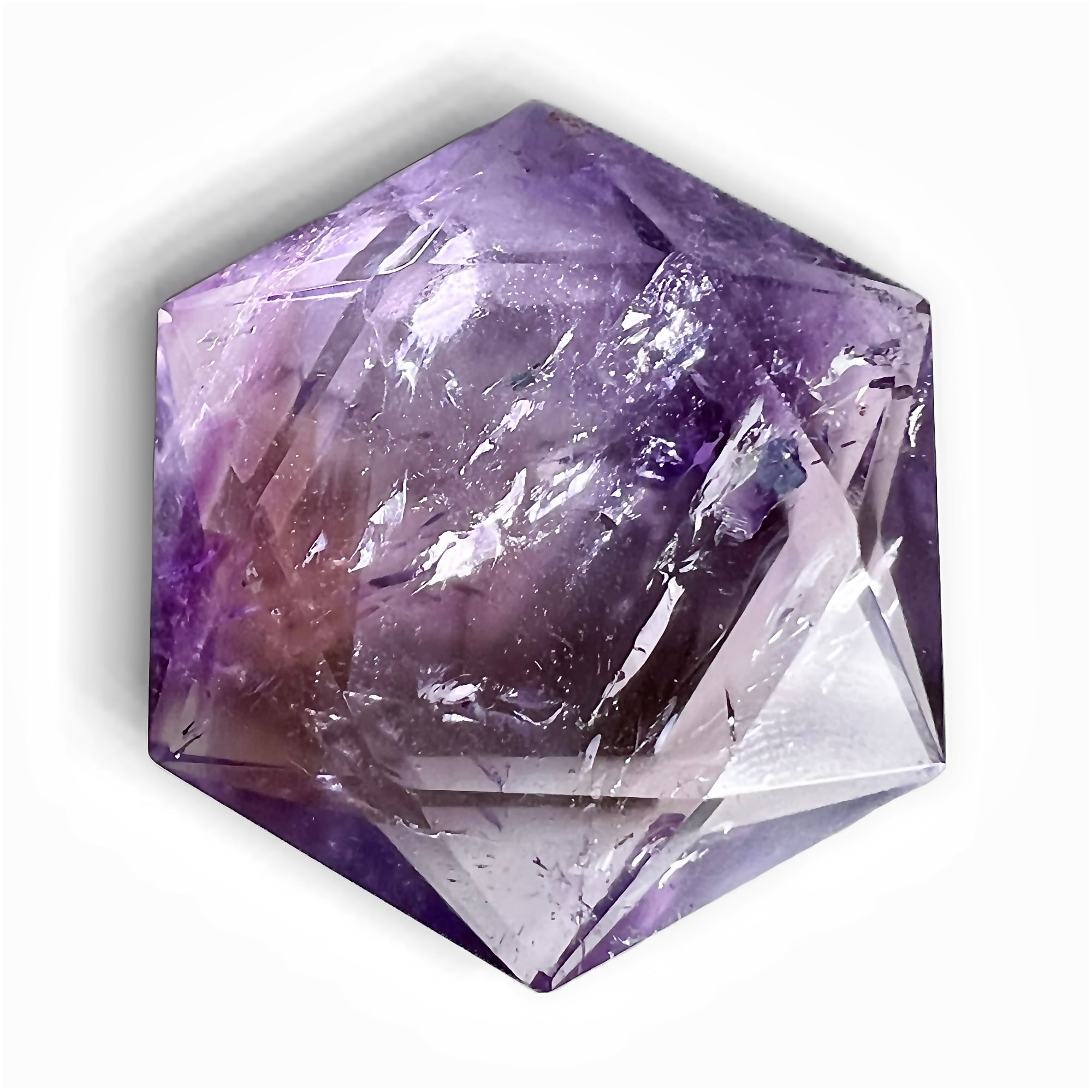 淡い紫と黄金色がひとつに溶けあう、天然アメトリンのヘキサゴン(六芒星)カットです。